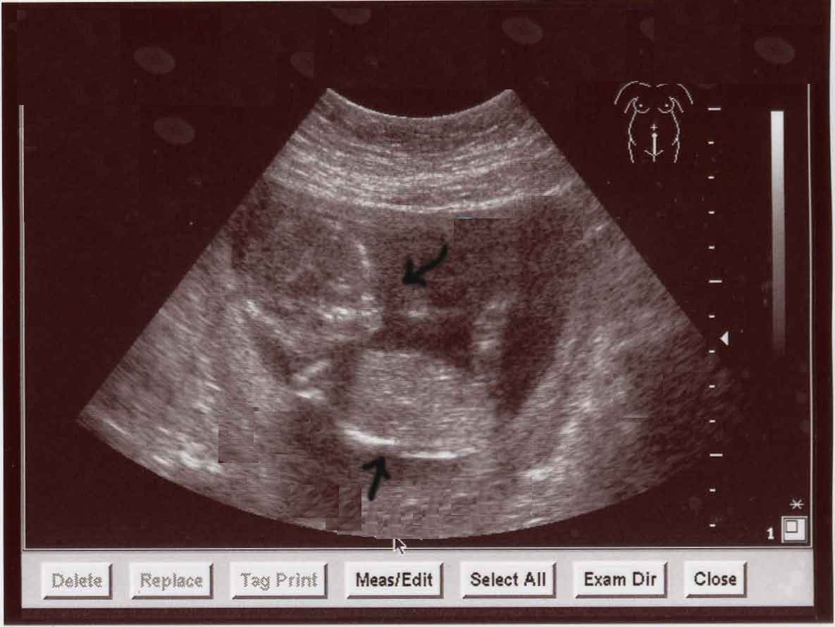 Bu esnada embrio gebelik kesesi içerisinde hızla gelişmektedir. Yaklaşık 2-5 mm boyutundadır ve 3-4 mm büyüklüğünde yuvarlak beyaz halka şeklinde izlenen yolc kesesine yakın yerleşimlidir.