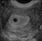 Transvaginal ultrasonografi ile gebelik kesesi ( gestasyonel sac) rahim içinde saptanabilir. Gebelik kesesi genel olarak 4 hafta+3 gün gibi erken bir dönemde saptanabilir. Rahim iç duvarında 3-5 mmlik içi koyu renkli halka şeklinde gözlenir.